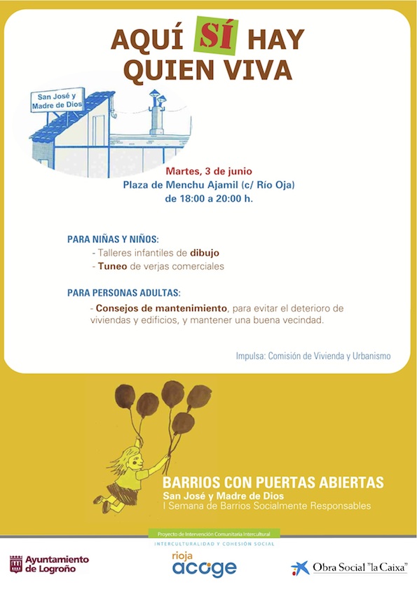 El Proyecto de Intervención Comunitaria Intercultural es impulsado por Fundación Bancaria ”la Caixa” en 40 territorios de España, en colaboración con distintas entidades sociales, Rioja Acoge, en el caso de Logroño. Se trata de una intervención preventiva y promocional que fomenta las relaciones interculturales, favoreciendo la cohesión social y, en definitiva, pretende el empoderamiento de la sociedad en pos de la convivencia, la mejora de la calidad de vida y el desarrollo comunitario.