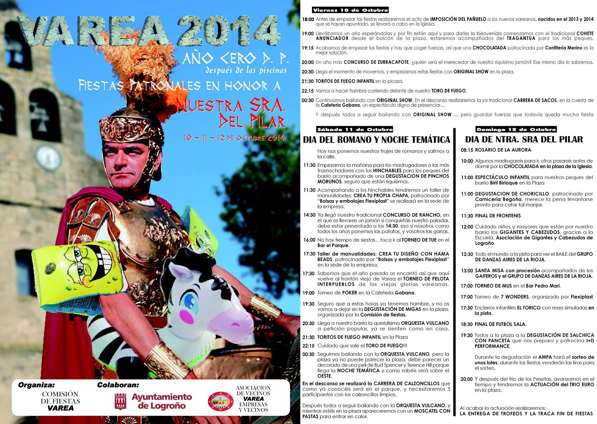 Este fin de semana con motivo de la festividad de Nuestra Señora del Pilar, la Comisión de fiestas de Varea, tiene programadas un gran número de acitividades para que todo el mundo que se quiera acercar pueda disfrutarlas . Actividades de todo tipo y para todas las edades.