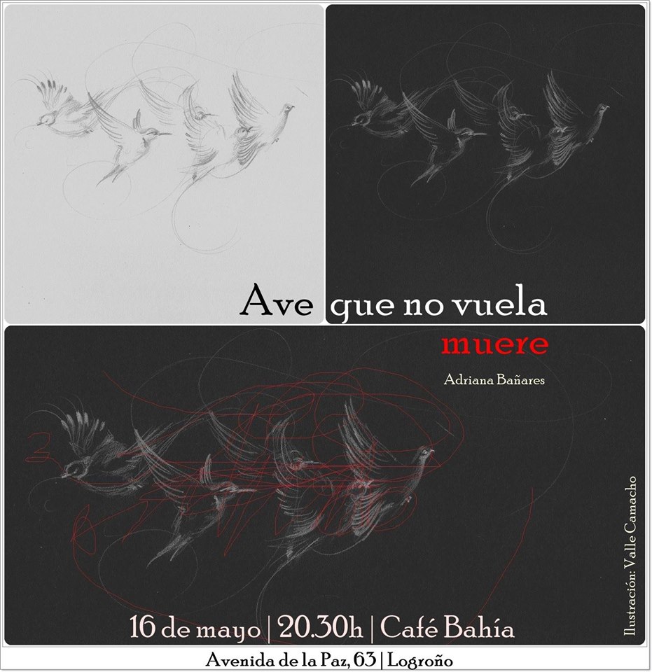 Este Sábado, 16 de Mayo, a las 20:30 Adriana Bañares Camacho, presentará su ultimo libro de poemas, «Ave que no vuela muere», en el Cafe Art Bahía, situado en Avda. de la Paz, 63 bajo.